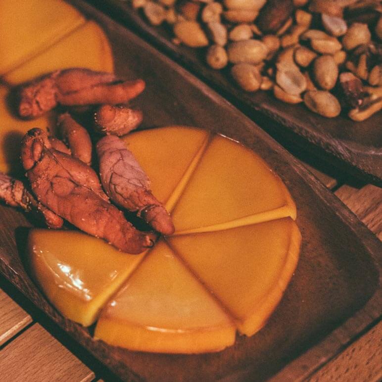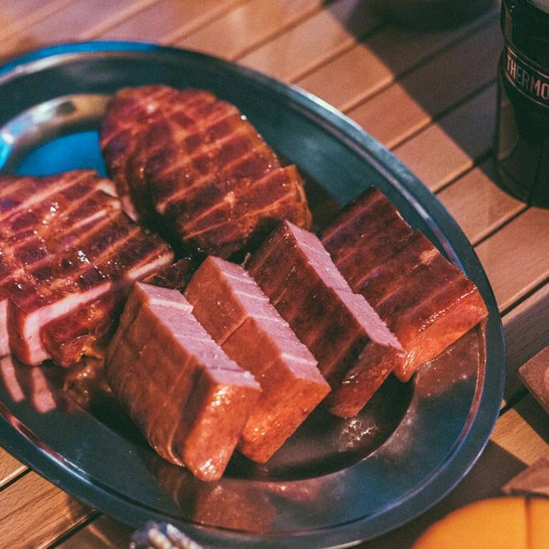 ナチュラムの燻製マスターが「チーズ、ミックスナッツ、焼きたらこ、ベーコン、ランチョンミート」を温燻しました。キャンプでは時間を意識して熱燻にしがちですが、熱燻にするとチーズが溶けてしまいます。なので今回は、チーズをフォールディングスモーカーの上部において温燻。あとはユニフレームのスモーカー温度計を使って、40℃から50℃の状態を約1時間保ちます。時間をかけて温燻すると色合いもよくなり、味の深みも増し、しっかり風味が乗ったお酒のつまみが完成です!