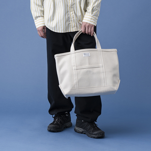 推しポイントは、しっかりと自立するほどの厚みのあるキャンバス生地(24oz)を使用している点。そんな簡単にへこたれることはなく、「THE トートバッグ」な不変的なデザインなので、長く愛用していただけます。カラバリも豊富なので、ご自身に合うカラーを探してみては。