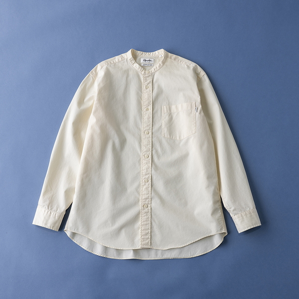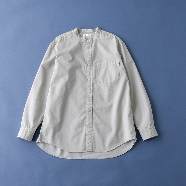 すっきりとした印象を受けるバンドカラーシャツですが、少しワイドなシルエットでトレンド感も押さえた一着。着こなしの幅が広く、ジャケットの中に入れても、Tシャツの上にガバっと羽織っても◎。「今日はどうやって着ようかな」とワクワクさせてくれるシャツです。