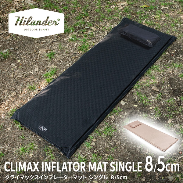 野外でも快眠できる、枕付きインフレーターマット