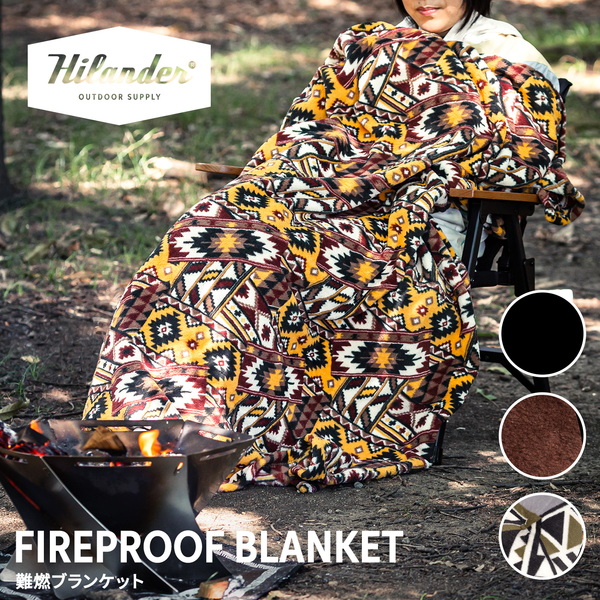 • Hilander(ハイランダー) 12月中旬発送難燃ブランケット ひざ掛け 暖かい 毛布 寒さ対策 秋冬 車中泊【1年保証】 N-012 ブランケット トライバル