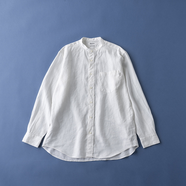 • シンプルな定番バンドカラーシャツです。大きめの胸ポケットにブランドピスネームが特徴です。ややゆったりとしたサイズ感に飽きのこないベーシックなデザインで時代に流されず長く愛用いただける一枚です。