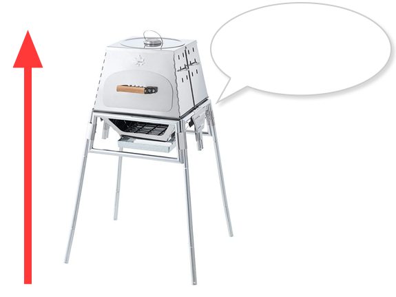 遮温カバーがあることでかまど内の温度調節がしやすく、料理の進行具合も確認できる。遮温カバーを使用するとかまど内を400度まで上げることが出来るので、本格窯焼きピザも楽しめます。