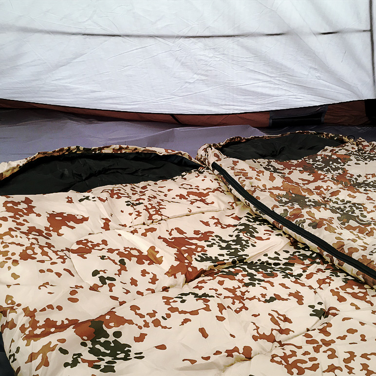 インナーテントはダブルサイズのエアマット&シュラフ2本なら余裕で入るサイズ感!連結して親子3人で使うもよし、もう1つ並べられるので、大人3人での使用までならノーストレス!