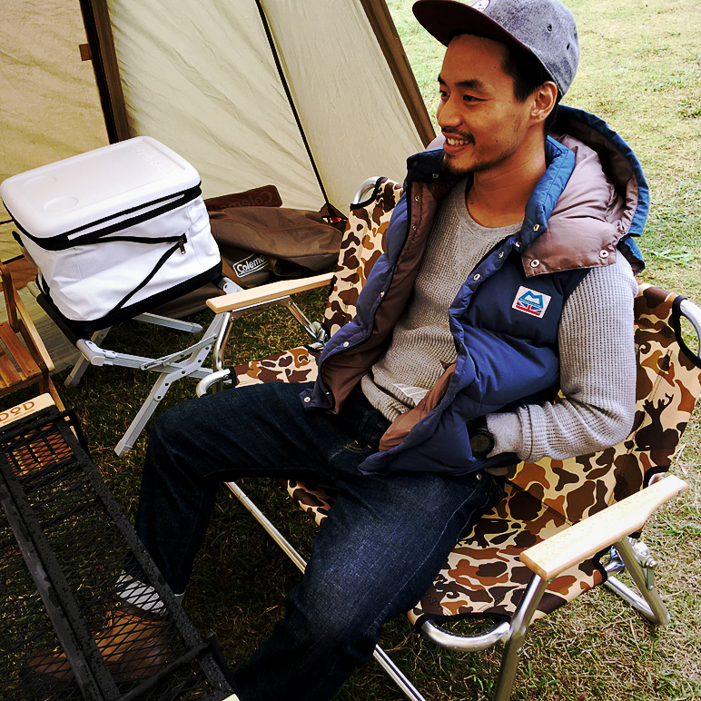 肩周りにストレスがかからないのでキャンプにベストはベストチョイス!笑 レトロなデザインのベストはデニムやチノパンなどとの相性も良く重宝すること間違いなし。