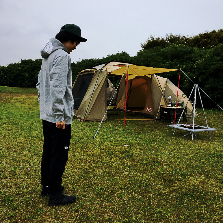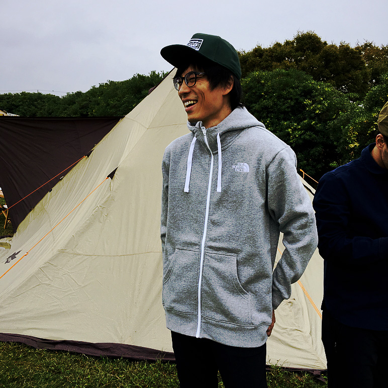 キャンプでは定番のスタイルといっても過言ではありませんが、パーカースタイルです。少し大きめのパーカーに細身のパンツをあわせるのが今の流行りのスタイルです。