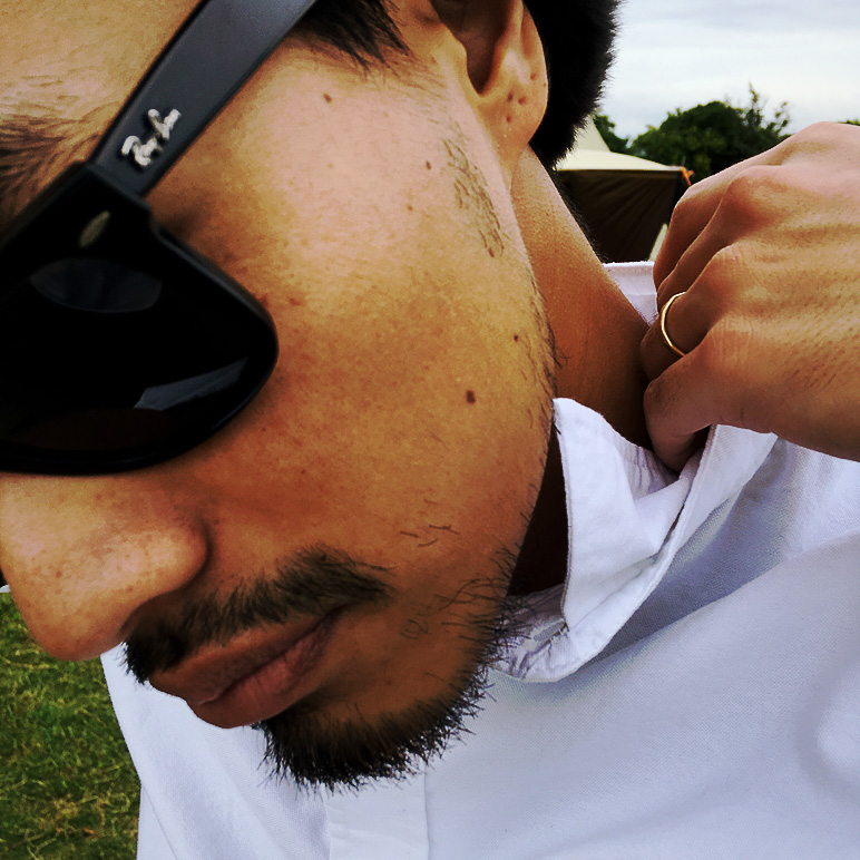 存在感のあるキャップがアクセント!ですが注目はこの2wayシャツ!普通のシャツに見えますが、なんと襟を中に入れ込むと今流行りのノーカラースタイルに早変わり!!1枚で2パターンのコーディネイトが楽しめます♪また、袖口がリブになっていて、細部まで拘られているのが素敵です♪