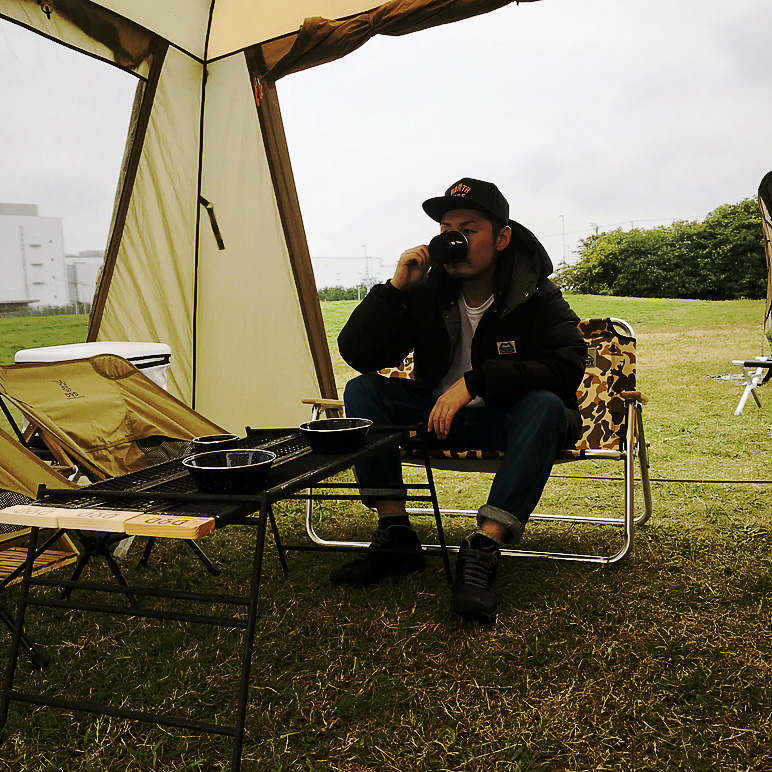 男×キャンプと言えば、やっぱり焚き火!シルバー基調のワイルドなキャンプギアも、ミリタリーテイストなら驚くほど自然に一体化!父と子、一度男同士で語ってみるのはいかがでしょうか?