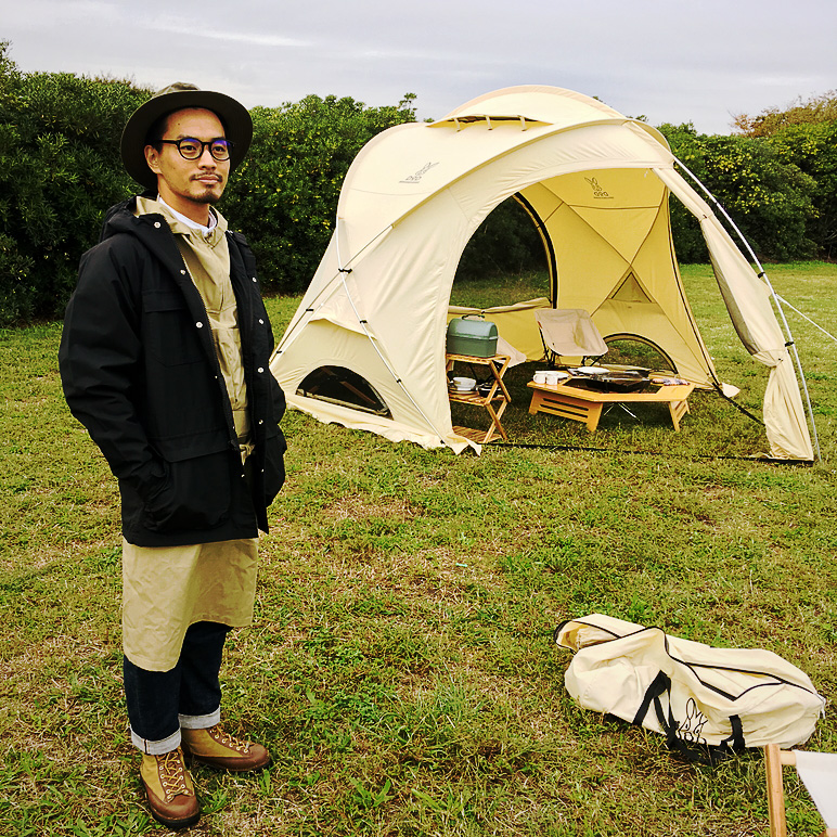 クラシックな雰囲気にピッタリハマる。シェラの64マンパを難燃のエプロンと組み合わせてのコーディネイト。フィルソンのハットもしっくりきます。ジャケットはコットンよりも光沢があり、ナイロンほどシャカシャカしすぎない、64素材採用。生地が水に濡れると、コットンがその水分を吸い取って膨張するため、生地全体の密度が上がり、水や風を通しにくくなります。水分が乾くと、繊維の間に隙間が生まれて通気性が良くなります。アウトドアにバッチリなスタイル。