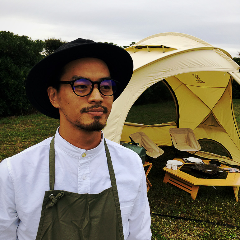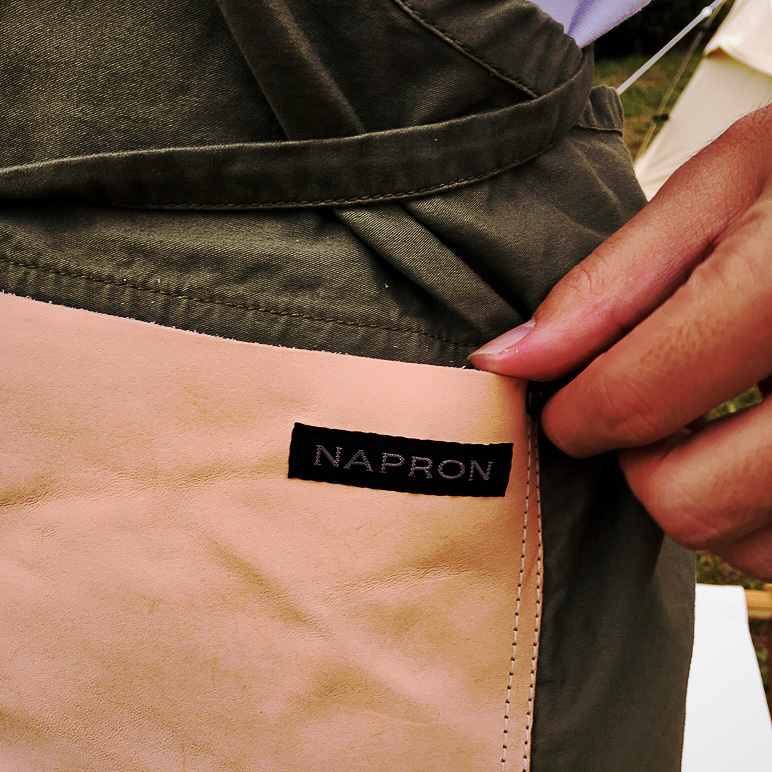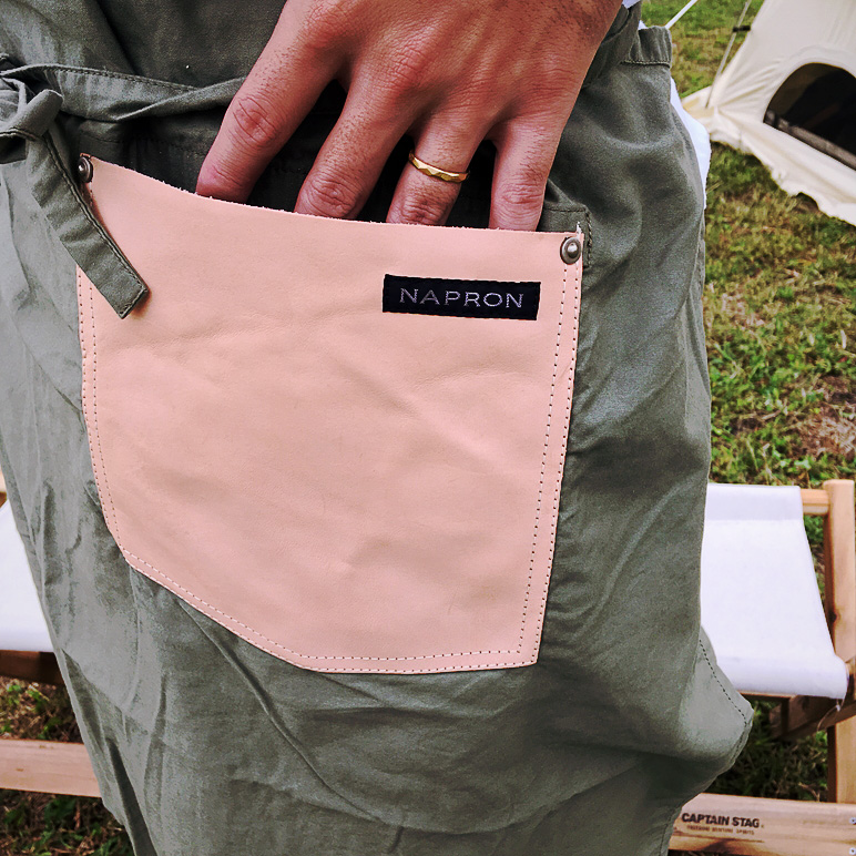 シンプルなシャツとパンツスタイルに上質なエプロンを着用するだけでオシャレキャンパーに早変わり。ポイントで革を使用している為、経年劣化も楽しんでいただけるのが特徴です。フィルソンのハットも良く合いますね。