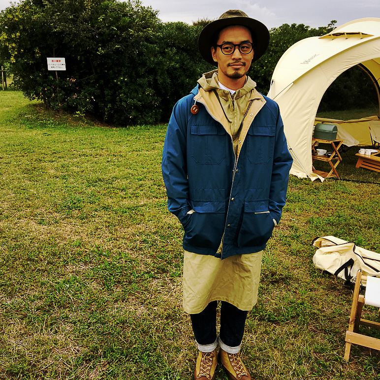 クラシックな雰囲気にピッタリハマる。シェラの64マンパを難燃のエプロンと組み合わせてのコーディネイト。フィルソンのハットもしっくりきます。ジャケットはコットンよりも光沢があり、ナイロンほどシャカシャカしすぎない、64素材採用。生地が水に濡れると、コットンがその水分を吸い取って膨張するため、生地全体の密度が上がり、水や風を通しにくくなります。水分が乾くと、繊維の間に隙間が生まれて通気性が良くなります。アウトドアにバッチリなスタイル。