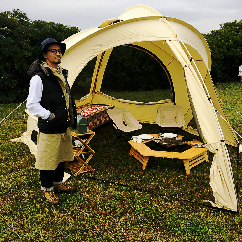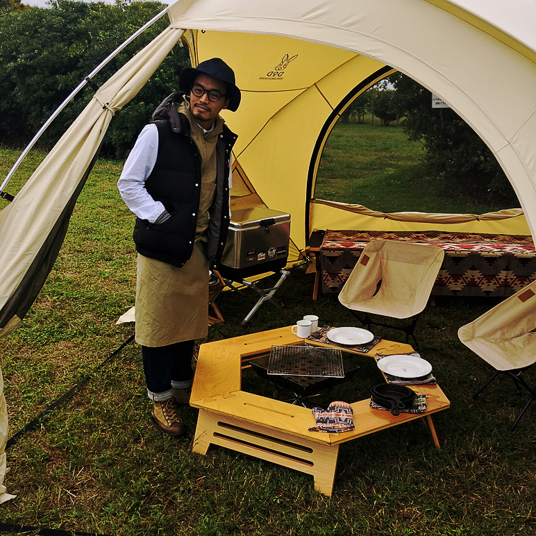 ダウンベストとコーディネイトすることで、シャツ、ベスト、エプロンでレイヤリングしていることがはっきり分かり、お気に入りのウェアをすべて見せて着用いただくことができます。肩周りも楽なのでストレスもなく、キャンプでの作業もはかどります。